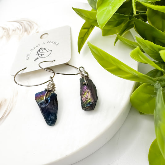 Aurora Shadow – Electroplated Clear Quartz Hoop Earrings
