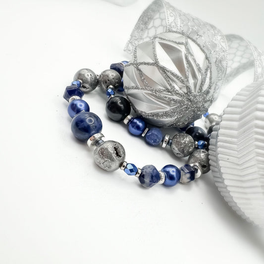 Midnight Stillness Bracelet | Sodalite, Geode Druzy & Hematite