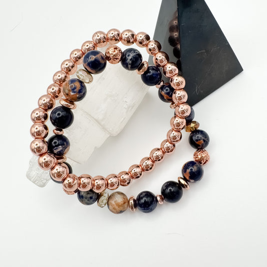 Brazilian Sodalite & Rose Gold Lava Stone Bracelet | Intuition & CalmRegular price $65.00 CADRegular priceUnit price per$65.00 CADSale price $65.00 CAD