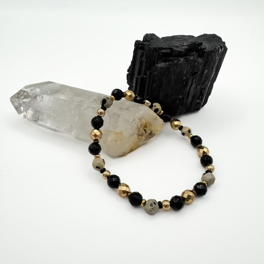 Sacred Flow | Dalmatian Jasper, Black Onyx & Hematite Bracelet | Grounding, Joy & ClarityRegular price $55.00 CADRegular priceUnit price per$55.00 CADSale price $55.00 CAD