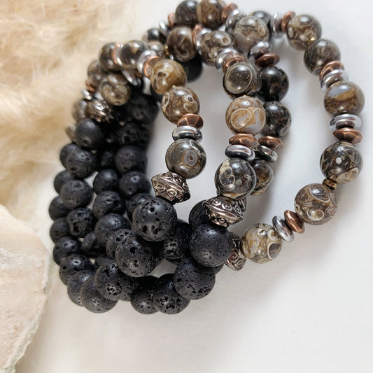 Matte Black Onyx & Lava Stone Diffuser Bracelet (7.5")
