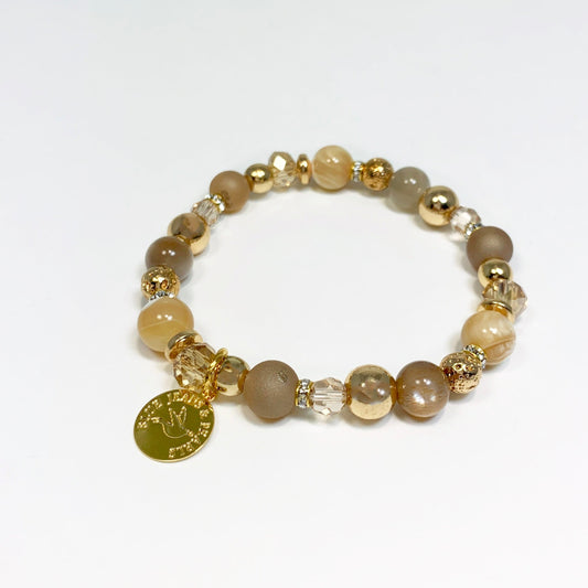Moonstone, Mother of Pearl & Champagne Druzy Bracelet (8mm)