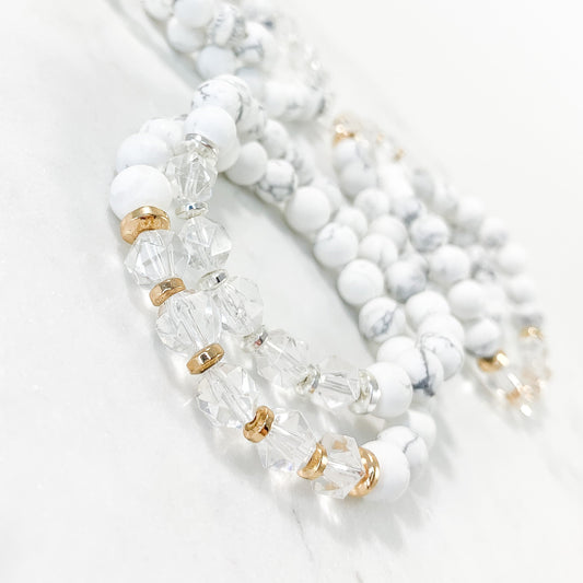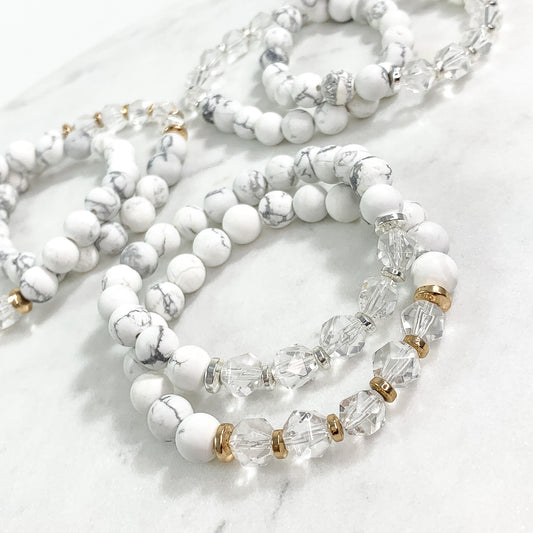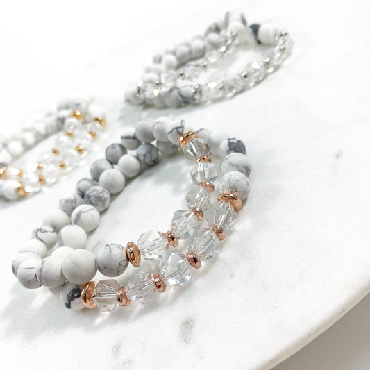 Howlite & Starcut Clear Quartz Bracelet (8mm - Silver)