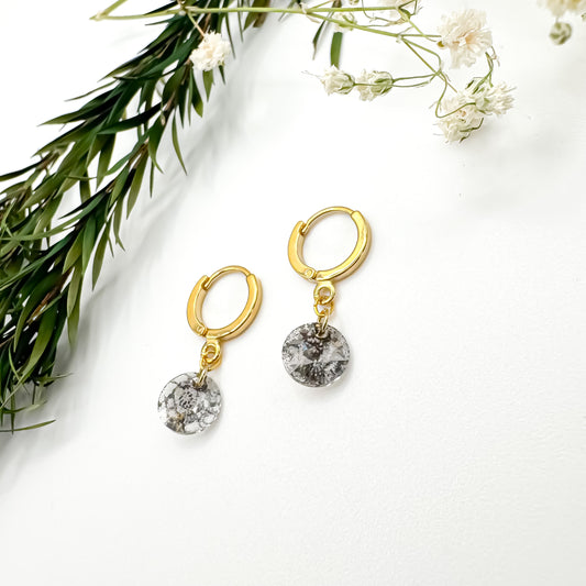 Here N There Crystal Hoops – Everyday Minimalist Earrings (Charcoal Shimmer & Gold)