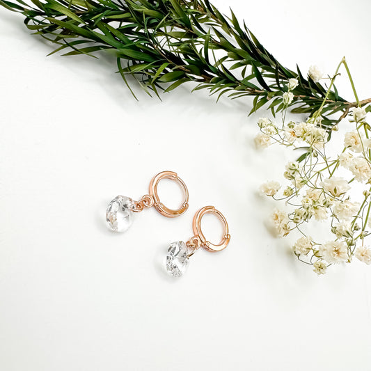 Here N There Crystal Hoops – Everyday Minimalist Earrings (Crystal Clear & Rose Gold)