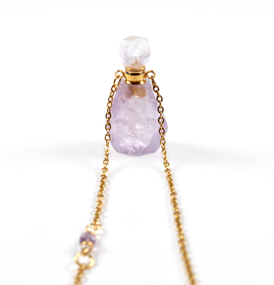 Lavender Amethyst EO Love Potion Bottle Necklace