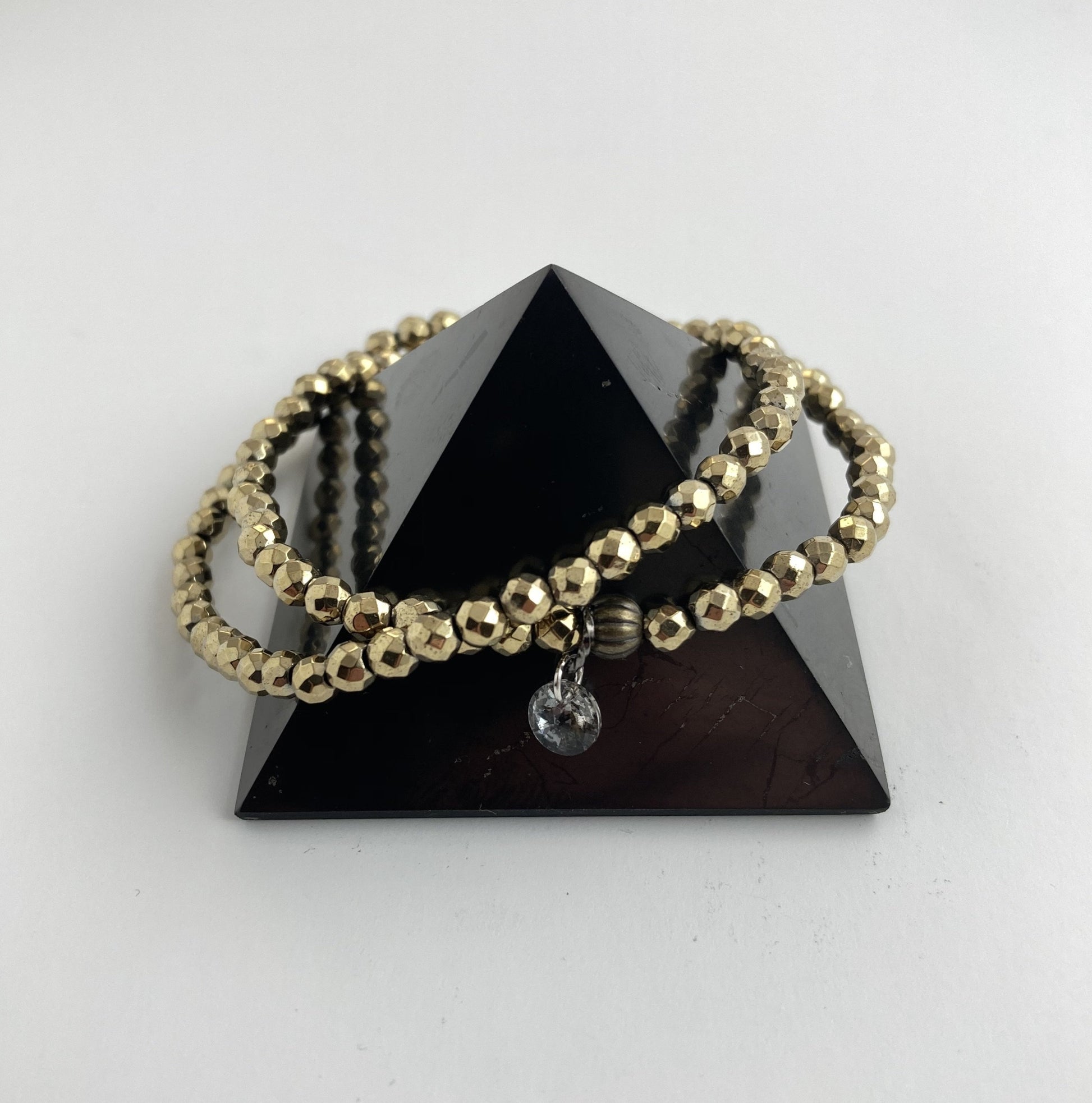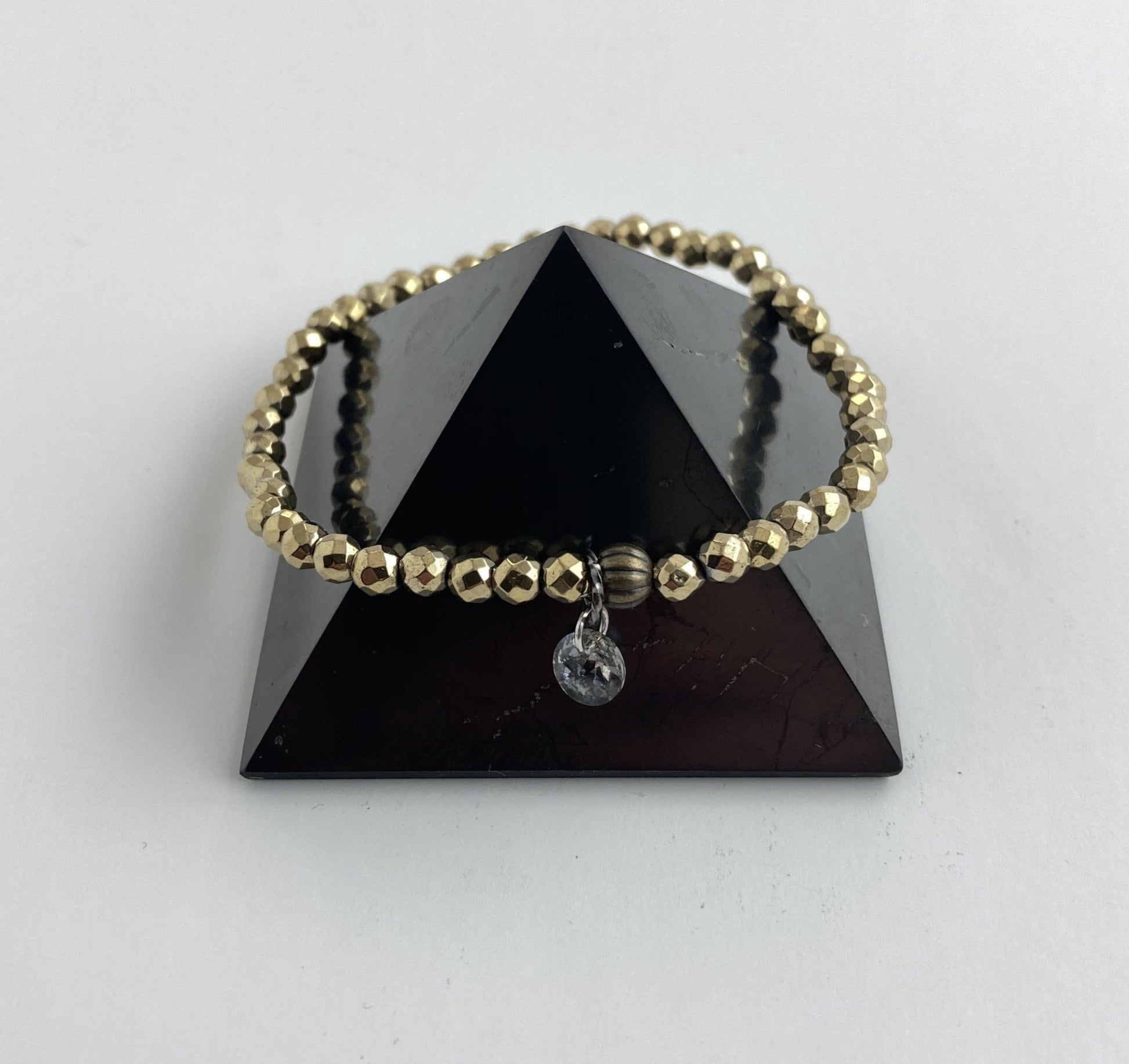 Antique Olive Gold electroplated Hematite with the high quality Austrain crystal you've come to know and love. Hematite is a highly stabilizing and grounding stone, and one of the most bountiful on the planet. The Hematite crystal meaning is linked to its connection to the root chakra, the center of security and survival. By creating a strong sense of energetic stability, this crystal works to align, clear and balance your root chakra so you feel centered and secure.