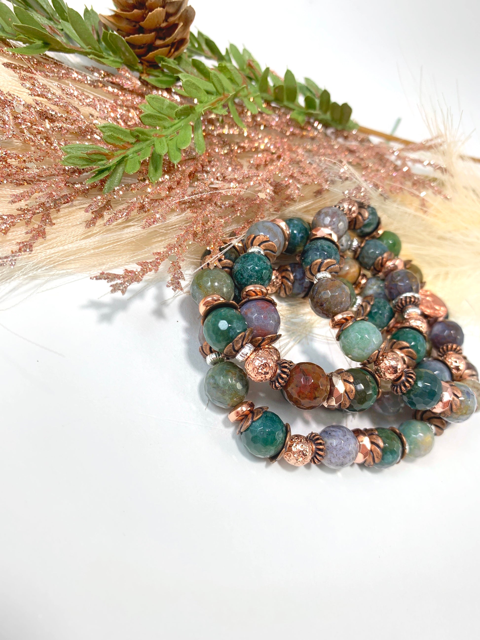 Faceted Fancy Jasper w Rose Gold, Copper & Silver (10mm)