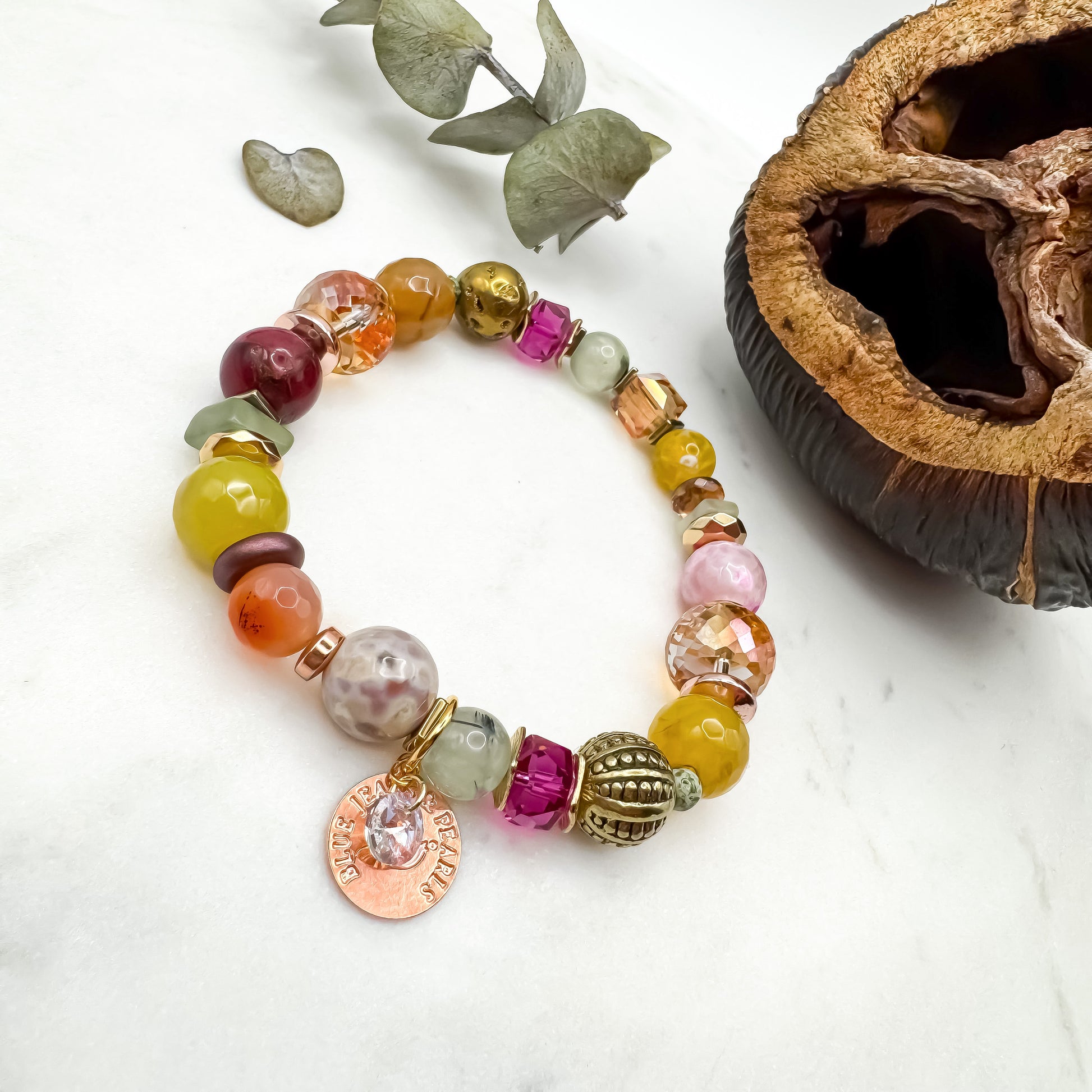 Handmade with a radiant mix of gemstones, glass, and metallic details, these designs shimmer with heart and intention. Bold, fiery tones meet grounded, earthen hues — evoking passion, transformation, and the glow of something eternal.