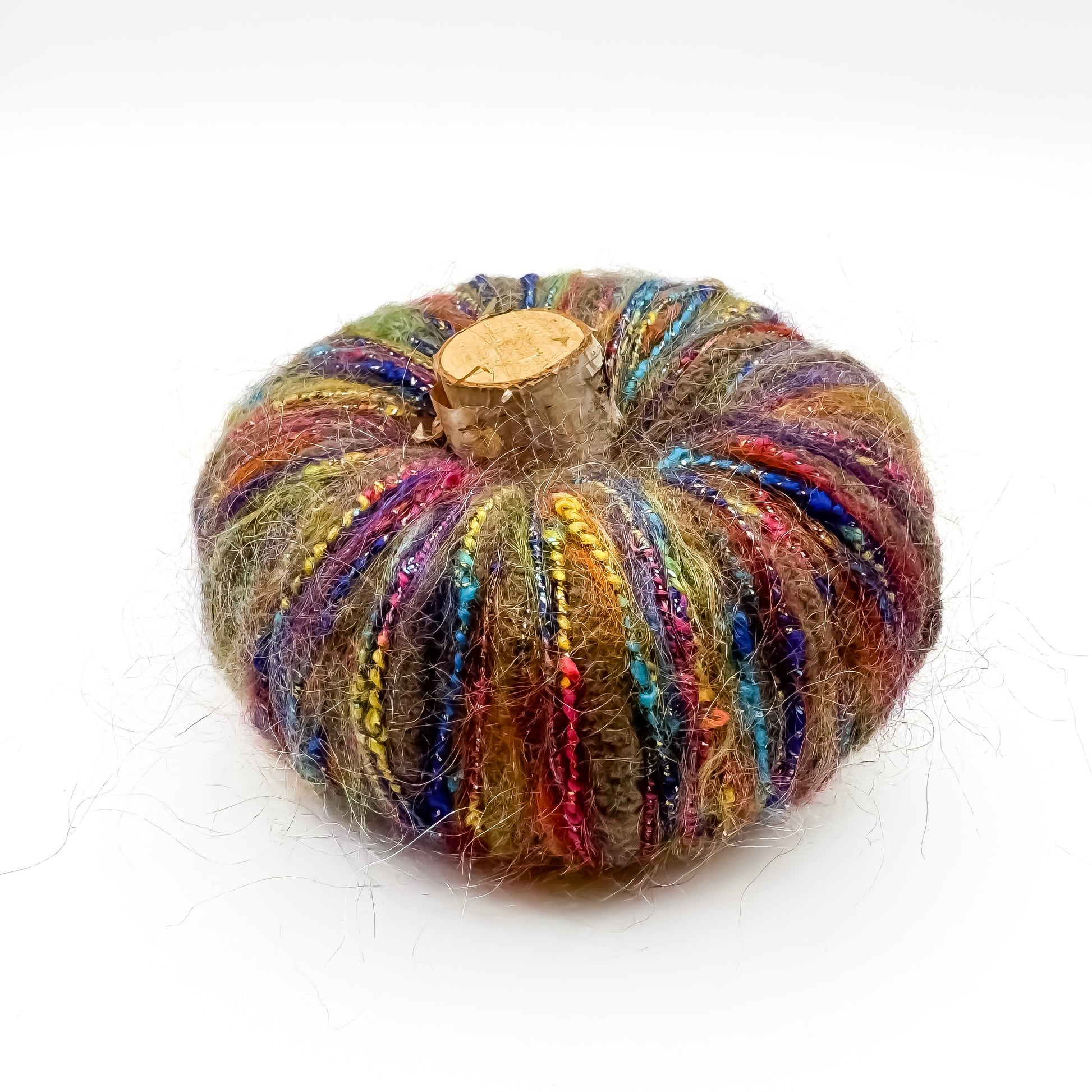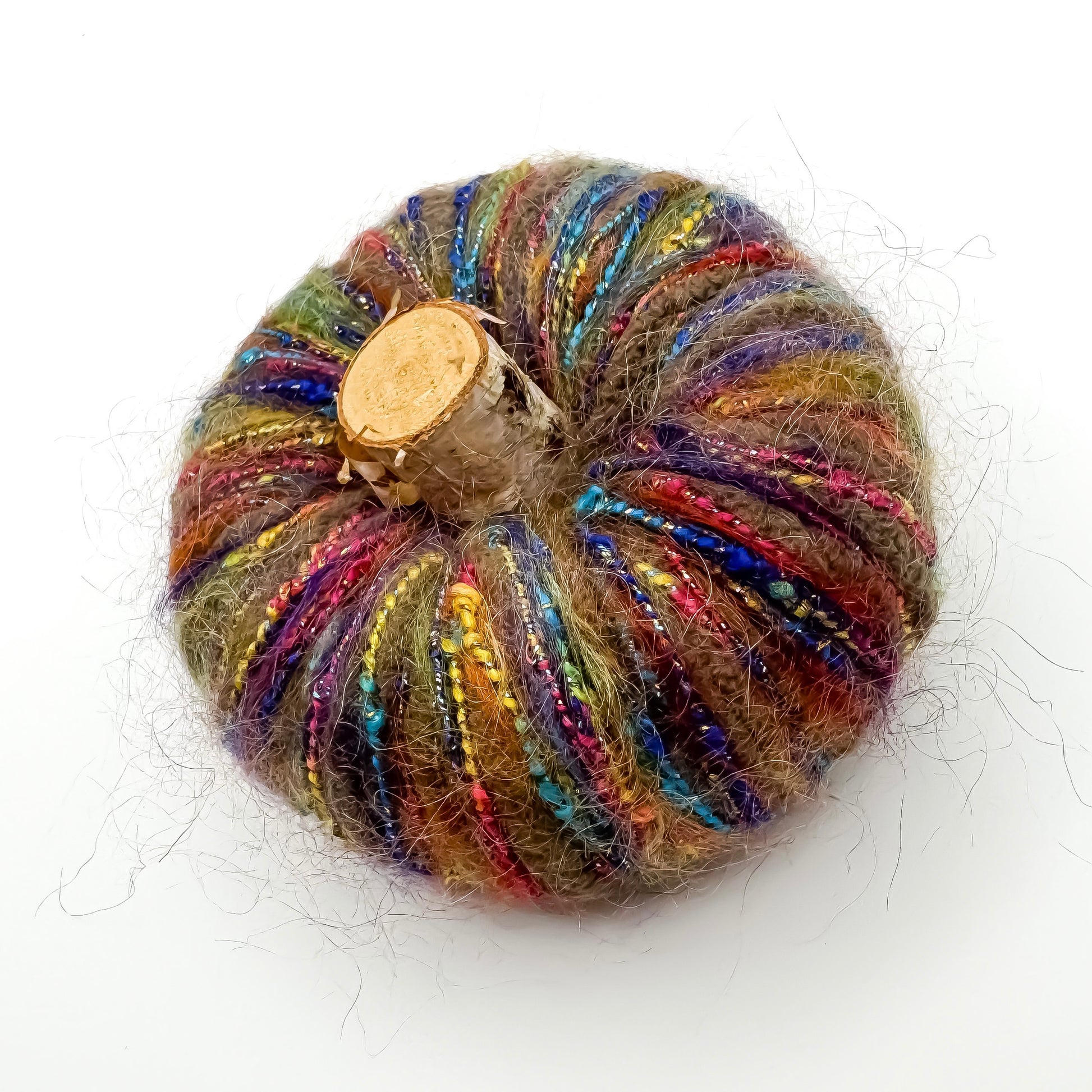 These handcrafted décor pumpkins are one-of-a-kind treasures made with quality yarns, natural foraged stems, and whimsical embellishments. Perfect for cozy fall decorating, autumn tablescapes, or as a thoughtful seasonal gift, each pumpkin is lovingly made by hand—no two are ever the same. Available in four sizes so you can mix and match to create your own handmade pumpkin patch or pick a single pumpkin for a sweet touch of autumn charm.