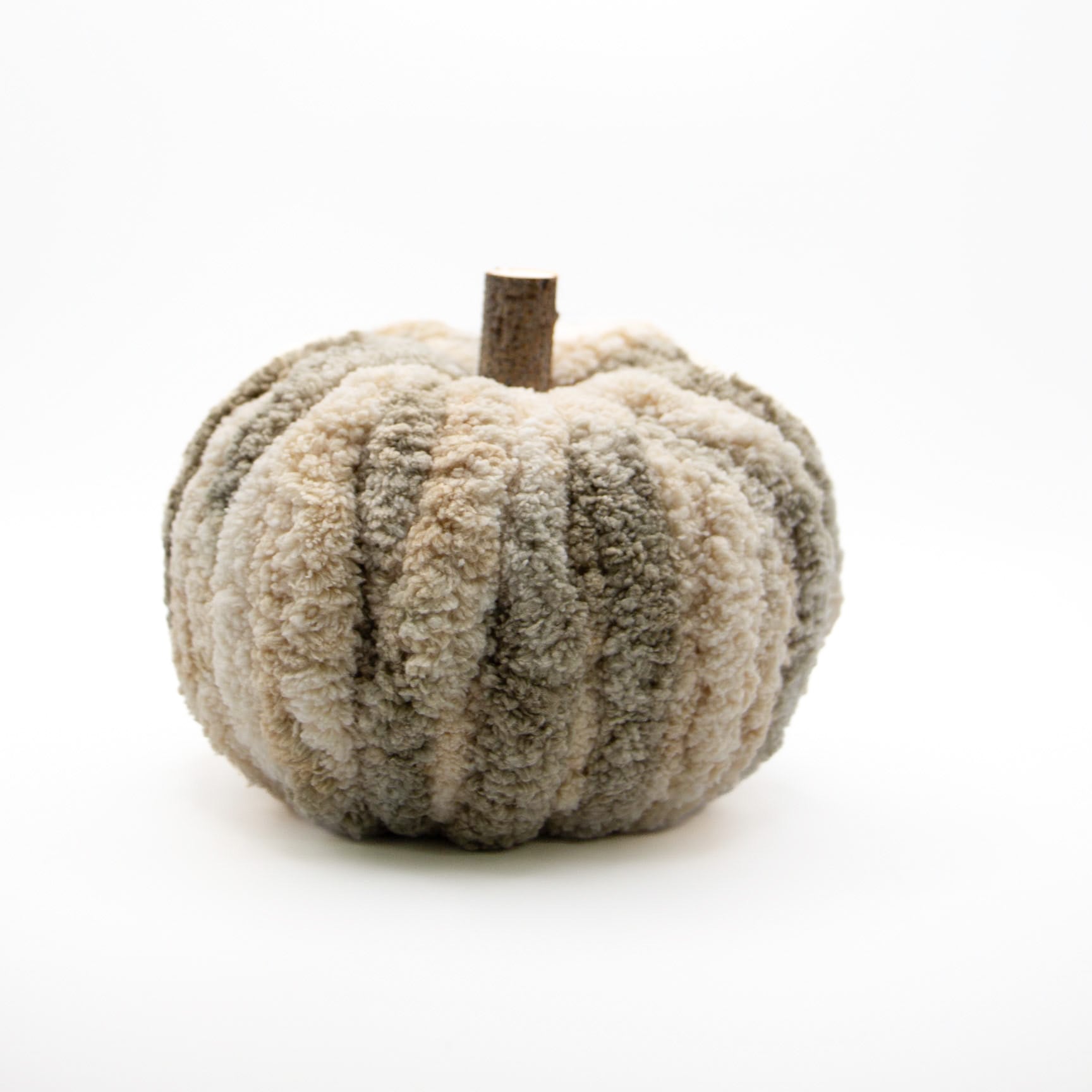 These handcrafted décor pumpkins are one-of-a-kind treasures made with quality yarns, natural foraged stems, and whimsical embellishments. Perfect for cozy fall decorating, autumn tablescapes, or as a thoughtful seasonal gift, each pumpkin is lovingly made by hand—no two are ever the same. Available in four sizes so you can mix and match to create your own handmade pumpkin patch or pick a single pumpkin for a sweet touch of autumn charm.