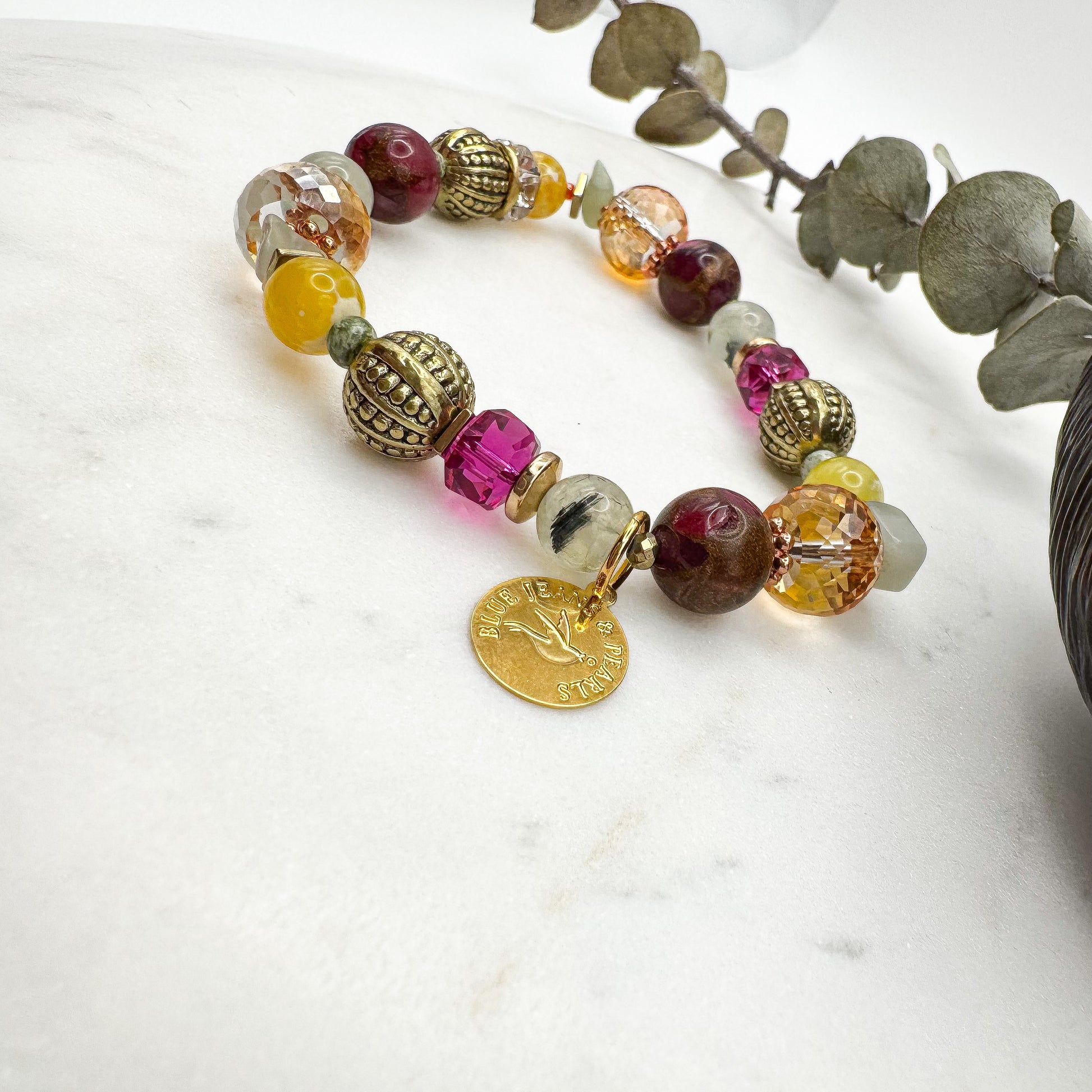 Handmade with a radiant mix of gemstones, glass, and metallic details, these designs shimmer with heart and intention. Bold, fiery tones meet grounded, earthen hues — evoking passion, transformation, and the glow of something eternal.