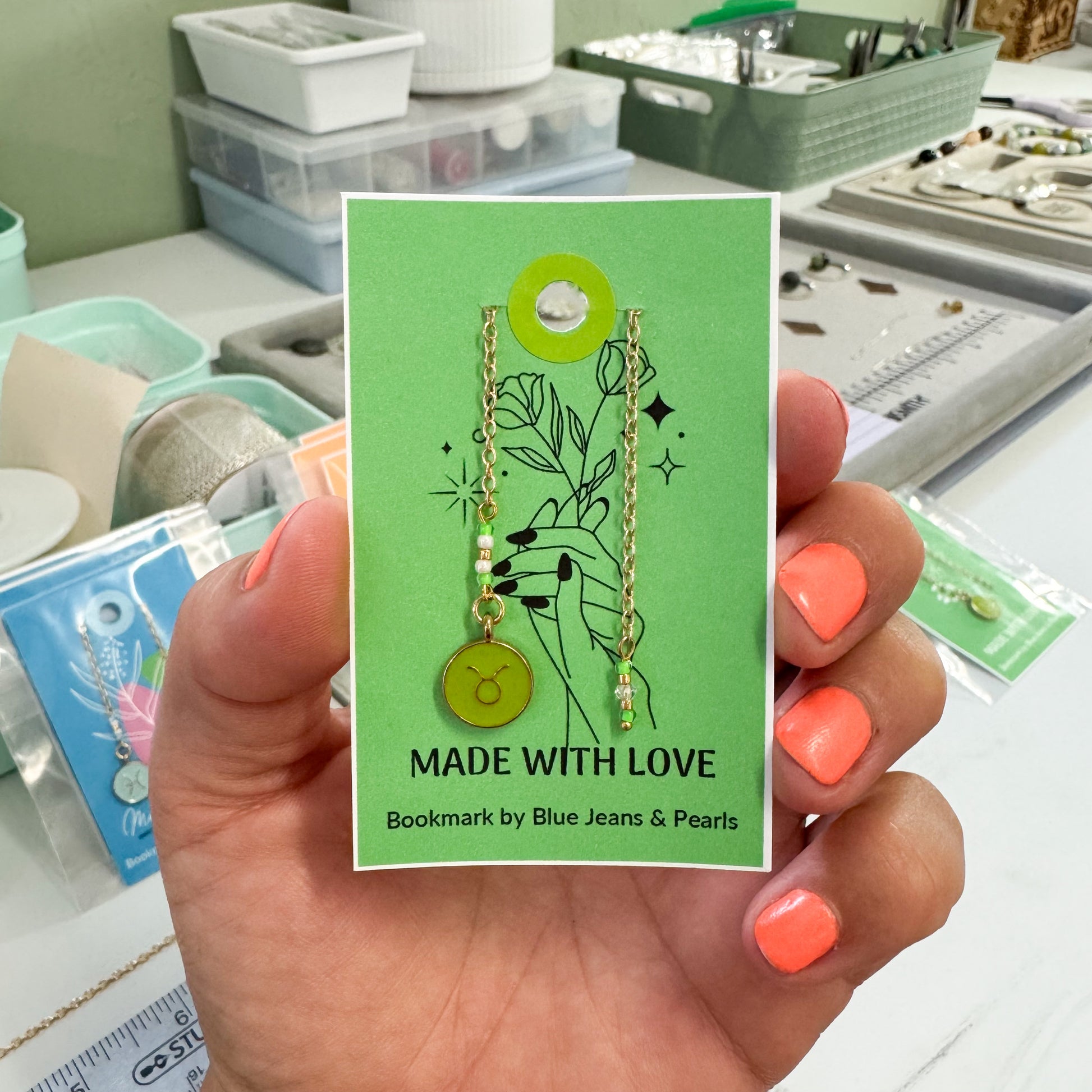 ♉️ ✨ Add a touch of starlight to your reading ritual with the Zodiac Chain & Charm Bookmark. Each piece features a dainty chain adorned with your zodiac sign’s charm and coordinating accents—making it as personal and unique as the night sky itself.